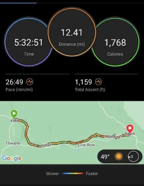 Tomorrow is another fairly relaxed day and great weather is in the forecast. Today was day 7 out of 12, and Iām about 90 miles from Robin Hood's Bay. Over the next few days the distance will stretch out, as the terrain has flattened. As long as I can avoid any more bogs, it should be relatively simple to knock out the miles and enjoy the scenery. I'm excited about not having to wear my waterproof boots. Tomorrow I can switch back to my lightweight Altra shoes, and after slogging through miles and mud in the heavier boots, I think they will feel like slippers.