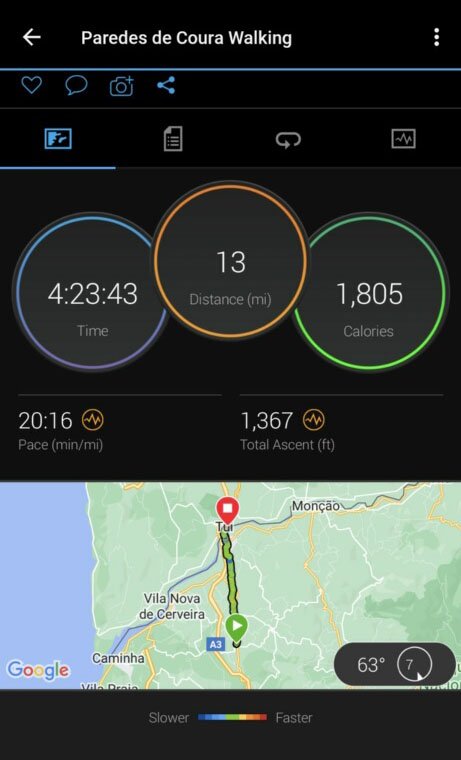 Another mile down the trail I overtook Sarah, the author I met yesterday. We walked along and chatted for an hour before settling in for coffee. As we approached Valenca, she spotted an outdoor market and moved in that direction as I continued down the trail. Just short of the old walled city I took a break for lunch and let the sun dry me out a little more.